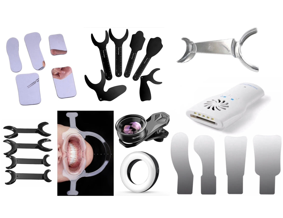 Intraoral Photography Kit includes: 6 Black Contrasters I 2 Black Lip Retractors I 5 Intra Oral Mirrors I 3 Premium Lip Retractors With Handles